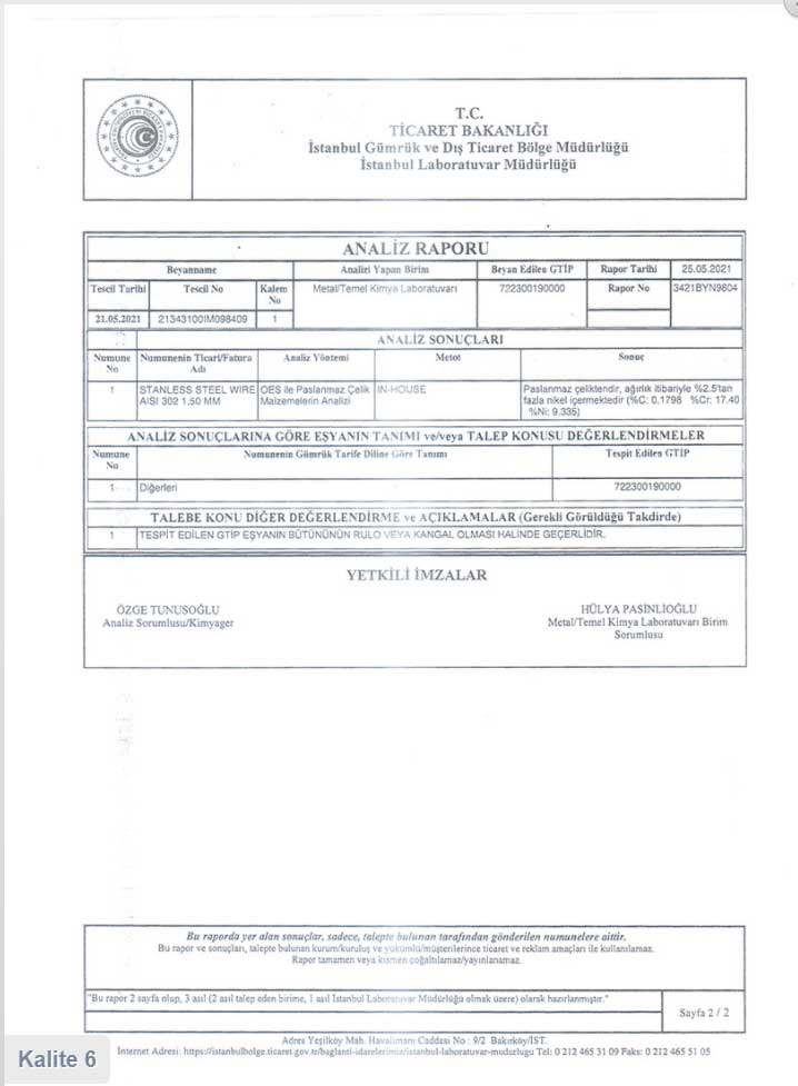 304 (1/4 Hard) Örmelik Paslanmaz Teller